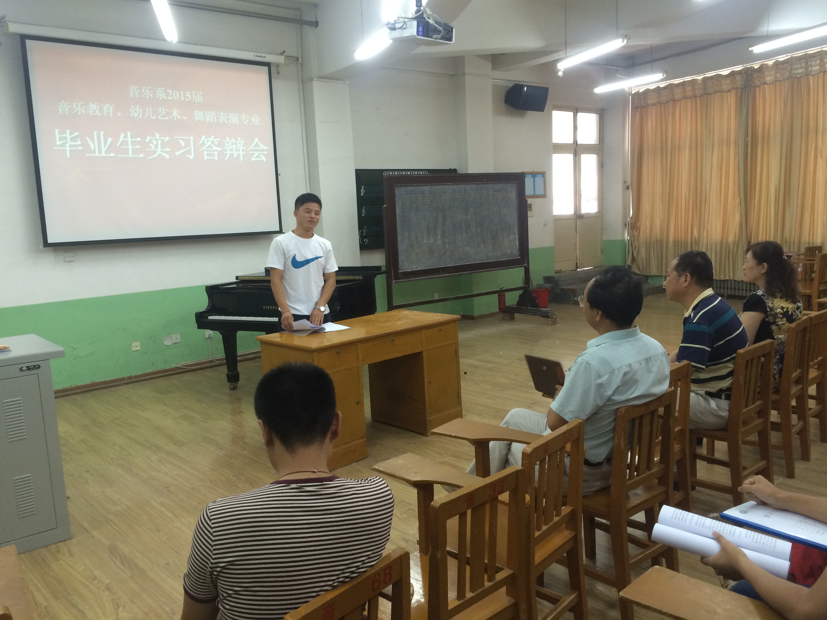 6月25日上午,音乐学院2015届音乐教育专业、幼儿艺术专业及舞蹈表演专业毕业生进行了实习答辩会。答辩评审小组由音乐学院院长郭玉华、党总支书记金晓雪、副院长路玉才、辅导员杨斌、刘鹏等六位成员组成。答辩过程中,学生首先进行实习总结汇报,随后答辩评审小组成员进行即兴提问与交流。答辩会组织有序,过程流畅。通过答辩,实习学生总结了自己的实习收获,教师也掌握了学生的实习情况并给予客观的评价。答辩会历时90分钟,2012级音乐教育、幼儿艺术及舞蹈表演等三个专业的学生顺利通过毕业实习答辩。 (刘鹏供稿)